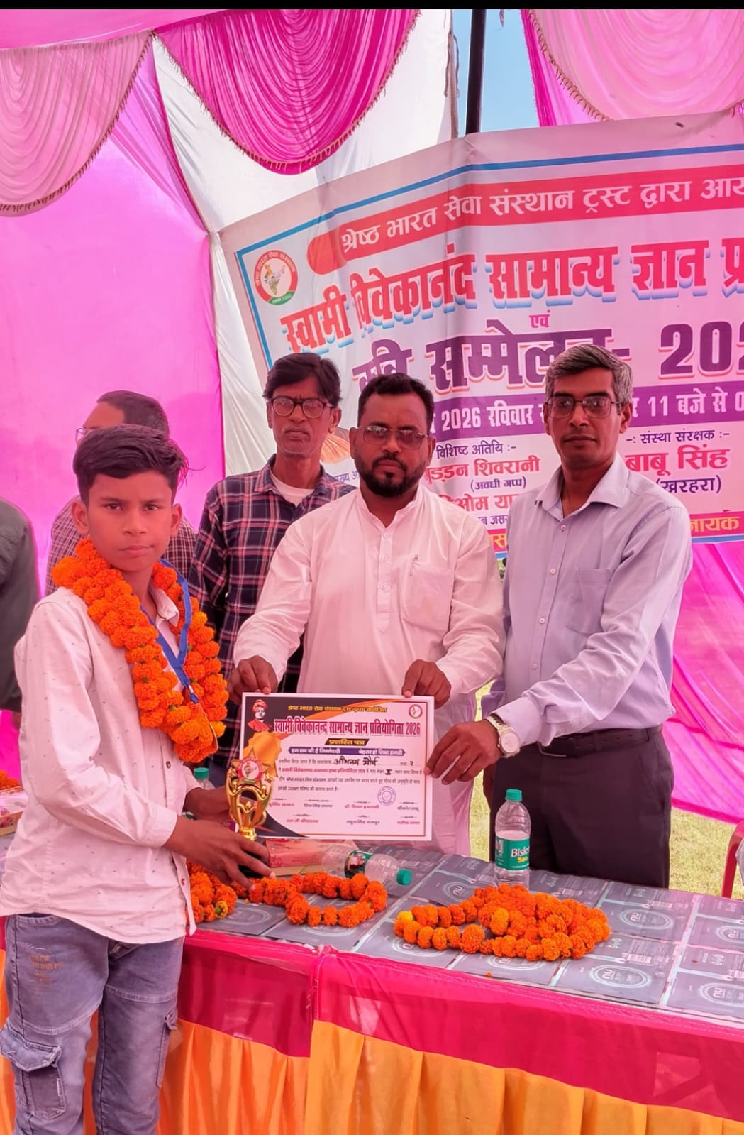 कार्यक्रम के मुख्य अतिथि समाजसेवी राजेंद्र साहू के हाथों सभी बच्चों को नगद पुरस्कार व शील्ड प्रशस्ति पत्र मेडल देकर सम्मानित किया गया। इसके साथ ही कवि सम्मेलन भी रहा। जिसमें कवियों में शिव शरण बंधु, समीर शुक्ला, नवीन शुक्ल, प्रवीण श्रीवास्तव, उमाकांत मिश्रा, अनुज साहू, राजेंद्र यादव आदि कवि मौजूद रहे। कार्यक्रम में विशिष्ट अतिथि गुड्डन शिवानी हरिओम यादव, शैलेंद्र सविता की उपस्थिति रही। कार्यक्रम का संचालन श्रेष्ठ भारत सेवा संस्थान के अध्यक्ष शिव सिंह सागर ने किया। परीक्षा प्रभारी के रूप में श्रीकांत साहू, राहुल राजपूत, सर्वेश यादव, राजबहादुर यादव ,वसीक सनम, रोहित यादव, जितेंद्र यादव निर्णायक कमेटी में राम जी श्रीवास्तव आनंद राय प्रमुख रूप से मौजूद रहें। कार्यक्रम के अंत में संस्था के संरक्षक बाबू सिंह यादव ने आए हुए अतिथियों का धन्यवाद ज्ञापित किया कार्यक्रम में काफी बड़ी संख्या में ग्रामीण लोग मौजूद रहे। इसी क्रम में आकर्षण का केंद्र बने डॉक्टर रईस रहमानी जिन्हें अब कुछ लोग अन्ना हजारे के नाम से भी पुकारने लगे हैं।