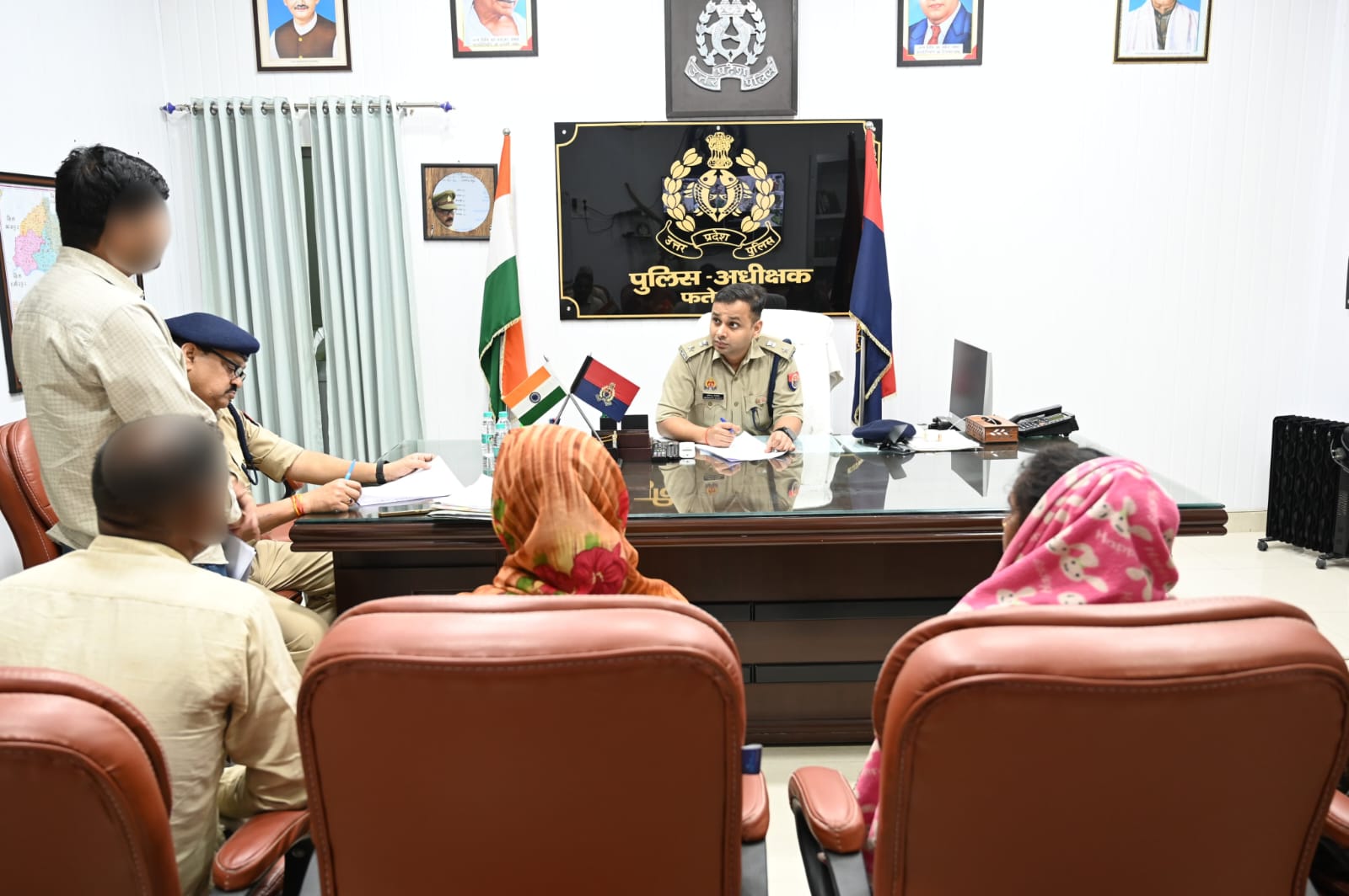 फतेहपुर। मंगलवार को पुलिस अधीक्षक अभिमन्यु मांगलिक ने पुलिस कार्यालय में आयोजित जनसुनवाई के दौरान आम जनता की समस्याएं सुनीं। इस दौरान जिले के विभिन्न क्षेत्रों से आए फरियादियों ने अपनी-अपनी शिकायतें पुलिस अधीक्षक के समक्ष रखीं।