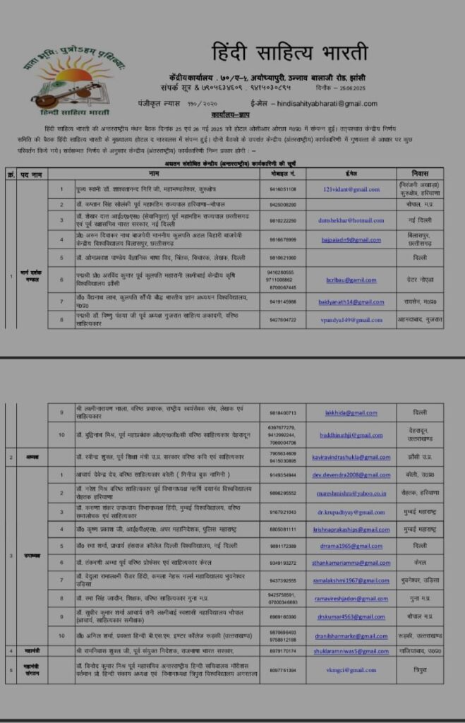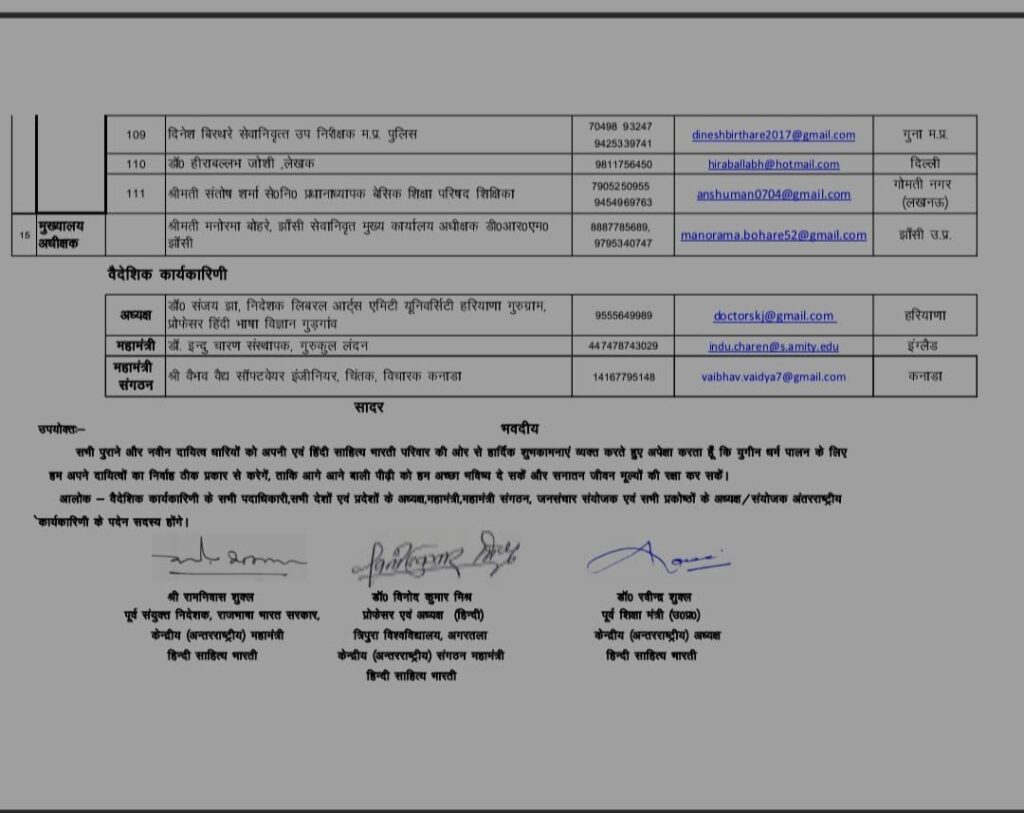 हिन्दी साहित्य भारती (अंतरराष्ट्रीय) ने जारी की कार्यकारणी