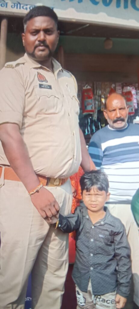 सुल्तानपुर घोष। बताते चले कि थाना क्षेत्र के भूलापुर गांव के एक परिवार अपने ससुराल जा रहे थे, तभी प्रेमनगर कस्बे में माता पिता समान खरीदने लगें और बच्चा ने अपने परिजनों को आँखों से ओझल होते देख इधर उधर खोजने लगा, तभी तीन वर्षीय बच्चा कहीं राह भटक गया, और उधर माता पिता भी अपने बच्चे को खोजबीन शुरू कर दिया और नहीं मिलने और चीख पुकार होने लगी, माँ की करुणा को देख बाजार के लोग इक्क्ठा हो गए। तभी भीड़ में से कोई शुभ चिंतक ने मामले की जानकारी स्थानीय पुलिस को दिया, मौके पर आनन फानन पुलिस ने पहुंचकर चारो तरफ खोजबीन शुरू किया और अबोध बालक को सुल्तानपुर घोष पुलिस टीम के ज़बाज कांस्टेबल रणवीर सिँह पटेल ने आधा घंटे में खोज कर माता पिता को सुपुर्द कर दिया। और साथ ही परिजनों को बच्चे के साथ में रहते हुए ध्यान में रखने के लिए कहा।