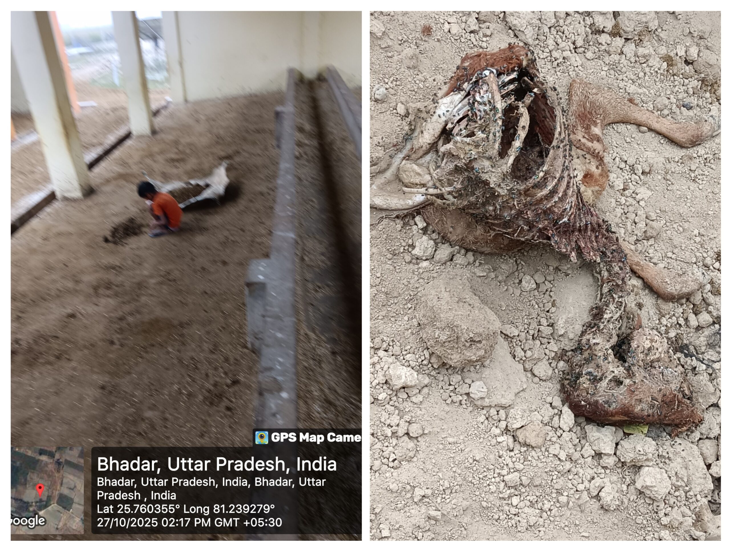 फतेहपुर। जिले क़े ऐरायां ब्लॉक क़े ग्राम पंचायत भादर में लाखों की कीमत से बनी वृद्ध गौ संरक्षण केंद्र (गौशाला) वर्तमान में भ्रष्टाचार की भेंट चढ़ते नजर आ रही है। तो वहीं गौशाला में गौपालक हमेशा नदारद रहते है। इसी गौशाला में नाबालिक बच्चों से गौशाला का काम करवाया जाता है जिसका विडियो सोशल मीडिया पर तेजी से वायरल हो रहा है। गौशाला में मृत गोवंशों को दफनाने का कोई भी उचित इंतजाम नहीं होने के कारण जंगली जानवरों का शिकार हो रहे हैं। मृत गोवंश जिम्मेदारों की अनदेखी से सूबे के मुखिया के आदेशों को ताक पर रखकर आदेशों की धज्जियां खुले आम उड़ाई जा रही हैं।
