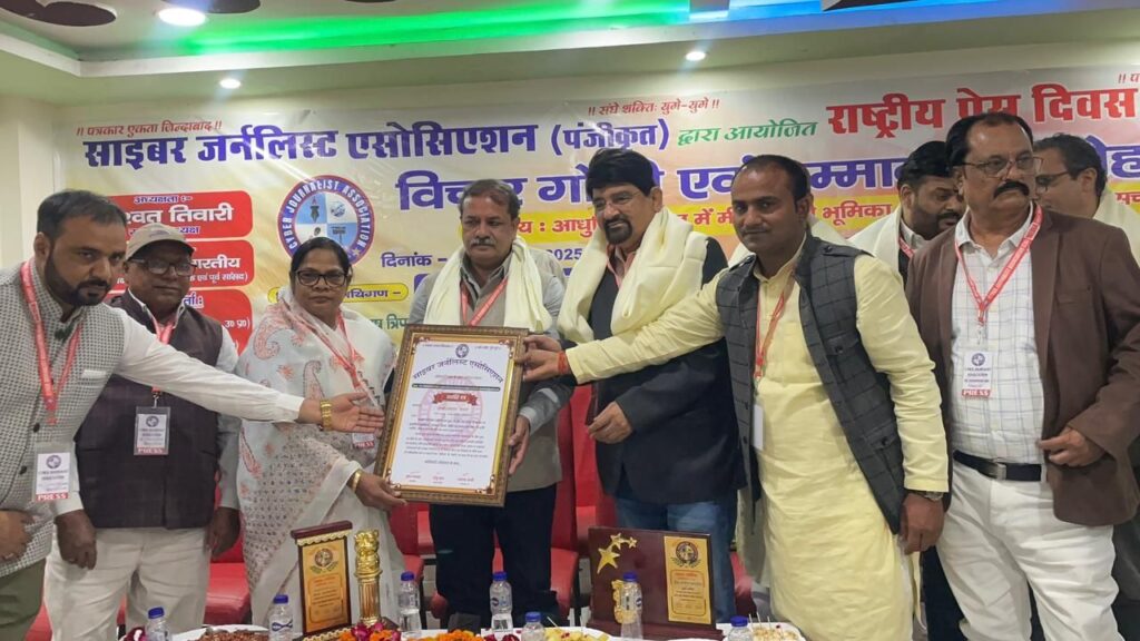 फतेहपुर। भारतीय प्रेस दिवस के अवसर पर साइबर जर्नलिस्ट एसोसिएशन (सीजेए) द्वारा एक कार्यक्रम आयोजित किया गया, जिसमें देश और प्रदेश के कई वरिष्ठ पत्रकारों ने हिस्सा लिया। कार्यक्रम में आधुनिक भारत में मीडिया की भूमिका, उसकी साख, जिम्मेदारी और चुनौतियों पर चर्चा की गई। इस बैनर तले देश में मीडिया को संवैधानिक रूप से लोकतंत्र का चौथा स्तंभ दर्ज करने, पत्रकार सुरक्षा कानून लागू करने सहित पत्रकार एकता की मुख्य रूप से चर्चा हुई।
